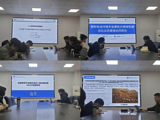 本次论坛围绕氢能高效利用、碳循环技术、储能系统升级、材料性能强化、海水淡化等前沿领域展开分享。王薪镜同学以“氢透平膨胀机轴承-转子系统动态特性研究”为题,聚焦氢液化核心装备稳定性,解析氢透平膨胀机轴-转子系统的动态响应规律,为相关装置安全高效提供理论支撑;朱文龙同学以“燃料电池冷链车金属氢化物储氢罐优化及热管理协同研究”为题,针对氢能在冷链物流领域应用的关键问题,提出储氢罐优化与热管理协同的创新方案;赵焱同学的“Al₂O₃陶瓷热机械性能强化研究”则针对极端工况下陶瓷材料的性能短板,探索Al₂O₃陶瓷热机械性能强化路径,为高端装备材料升级提供新思路;高程杰同学从“太阳能气扫膜蒸馏海水淡化系统热力学分析”出发,立足水资源短缺问题,剖析太阳能气扫膜蒸馏海水淡化系统的热力学特性,为推动低碳化海水淡化技术发展提供参考;李昌鸿同学就“低温等离子体耦合催化二氧化碳加氢RWGS性能研究”,紧扣“双碳”战略目标,探索低温等离子体与催化技术耦合路径,为二氧化碳高效转化提供新方案。